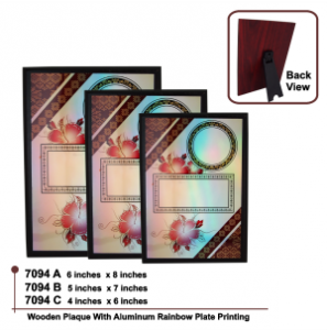 - 7094 A = 6″ X 8″ Wooden Plaque With Aluminium Rainbow Plate Printing