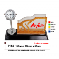 Wooden Acrylic Name Card Holder With Clock